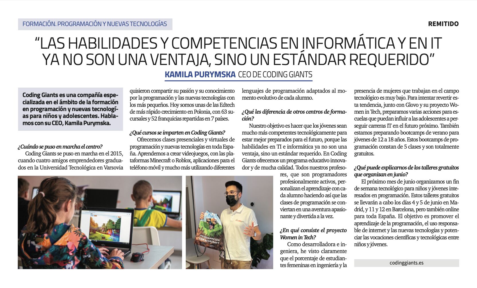 Coding Giants se puso en marcha en el 2015, cuando cuatro amigos emprendedores graduados en la Universidad Tecnológica en Varsovia quisieron compartir su pasión y su conocimiento por la programación y las nuevas tecnologías con los más pequeños. 7 años más tarde somos unas de las Edtech de más rápido crecimiento en Polonia, con 63 sucursales y 52 franquicias repartidas por todo el mundo: España, Croacia, Australia, Singapur, Alemania y Chile, entre otras ciudades. Coding Giants ha sido premiado como “Entrepreneur Of The Year” por EY Ernst&Young y premiado dos veces por “Forbes 30 under 30” en Polonia. La escuela llegó a España hace 3 años y trabajamos para repetir el mismo éxito aquí.